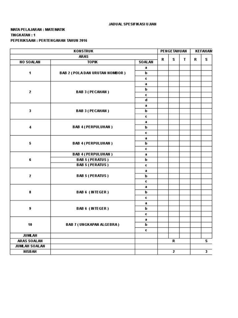 Top Pdf Jadual Spesifikasi Ujian Jsu Peperiksaan 123dok Com